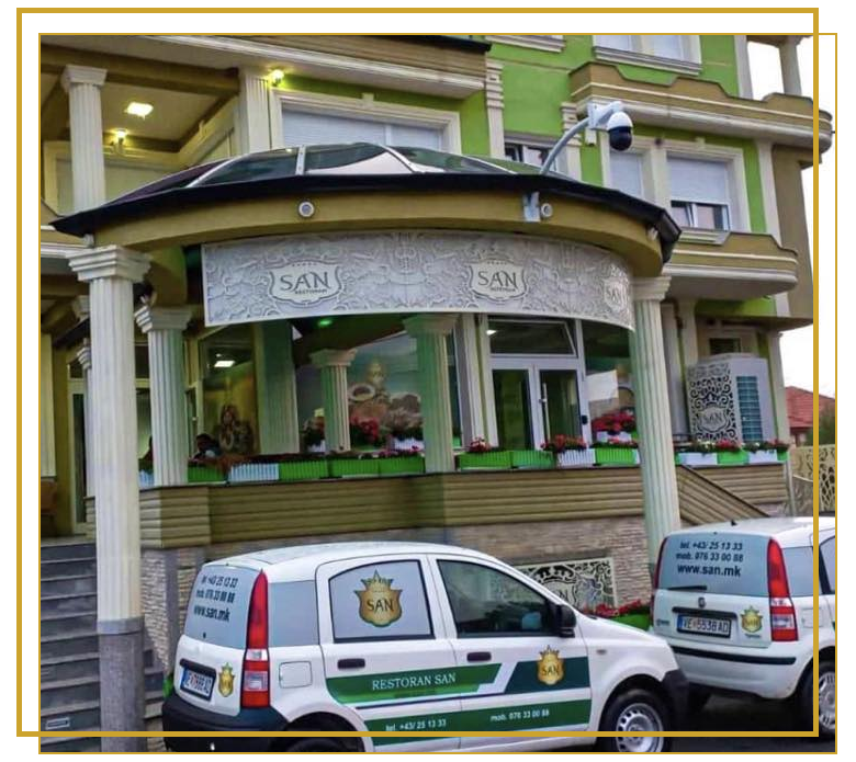 Во срцето на г.Оризари работи ресторанот САН. Ресторанот функционира на две нивоа, а поседува и летна градина. Со вашето прво зачекорување во ресторанот, ќе ве пречекаат ведрите лица на персоналот.